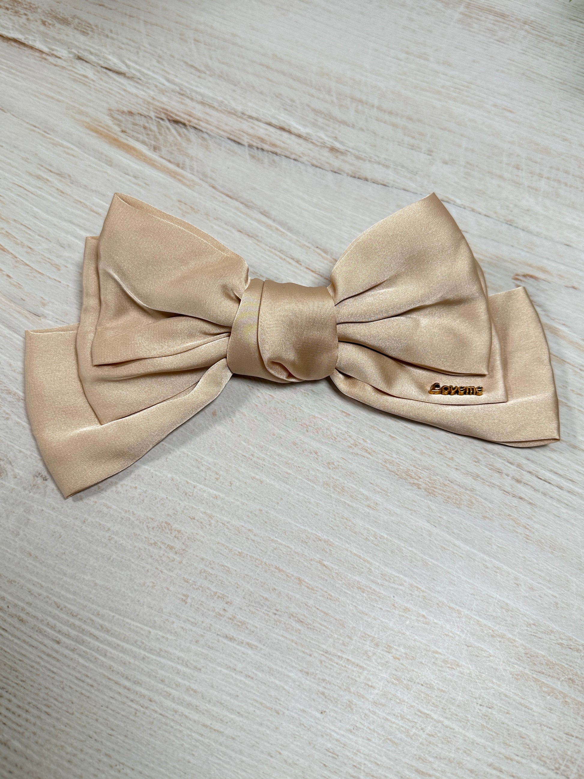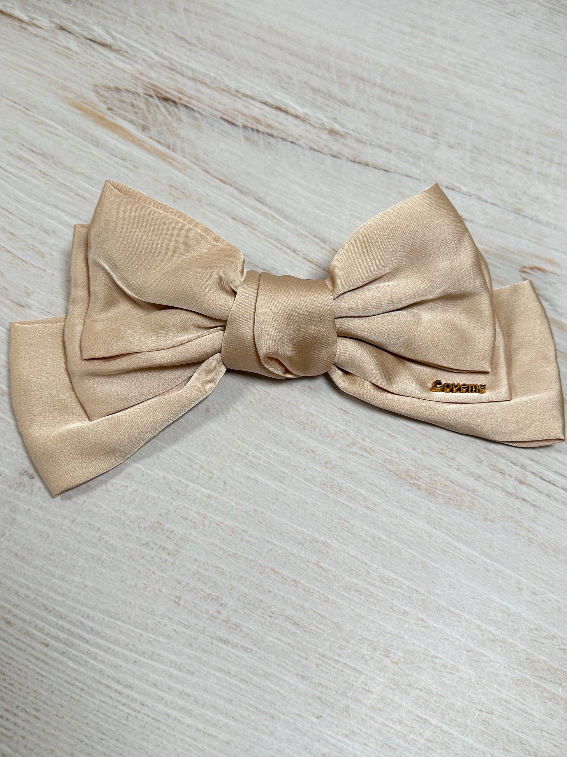 Satin Bow Clip Large, Cream